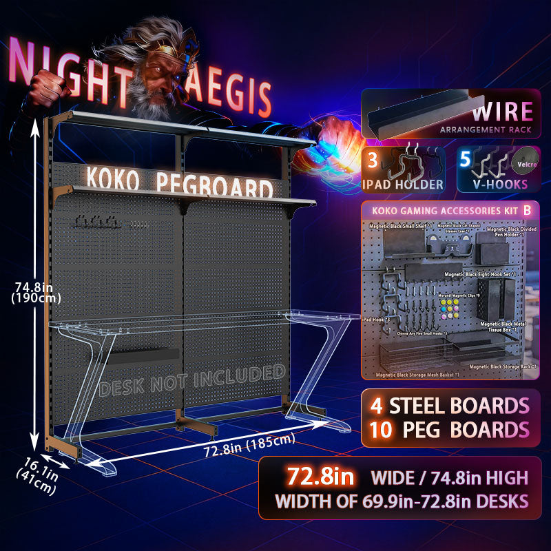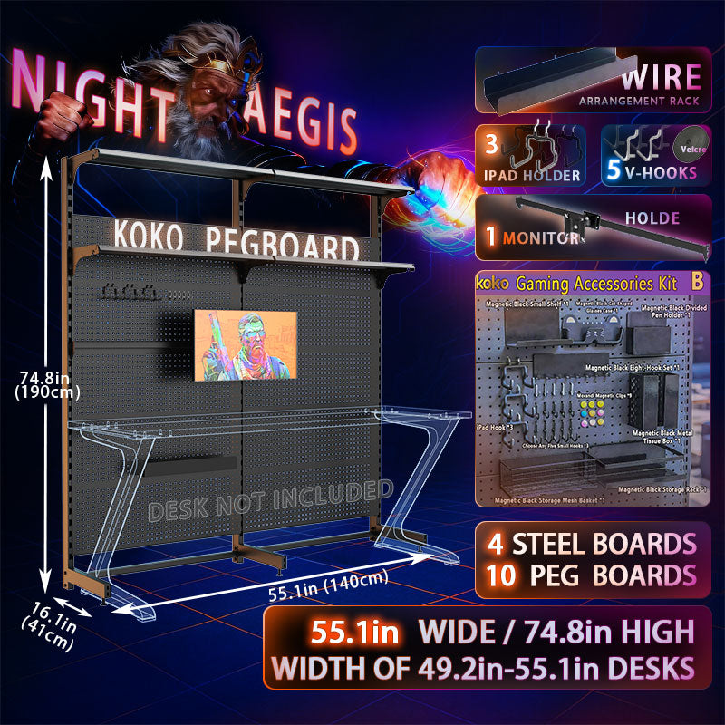 - Fits Desks 37.4-49.2in Wide | 74.8in H * 49.2in W| 2 Shelves + 10 Pegboard Back Panels / accessory kit B (Save $49) / one piece(Save $40) - $610.00