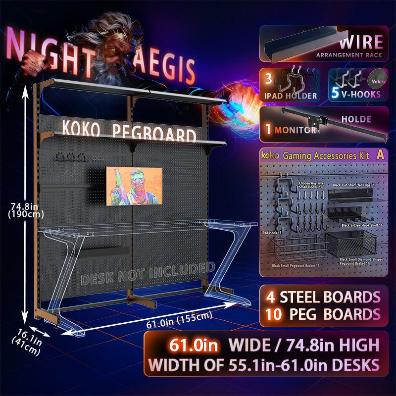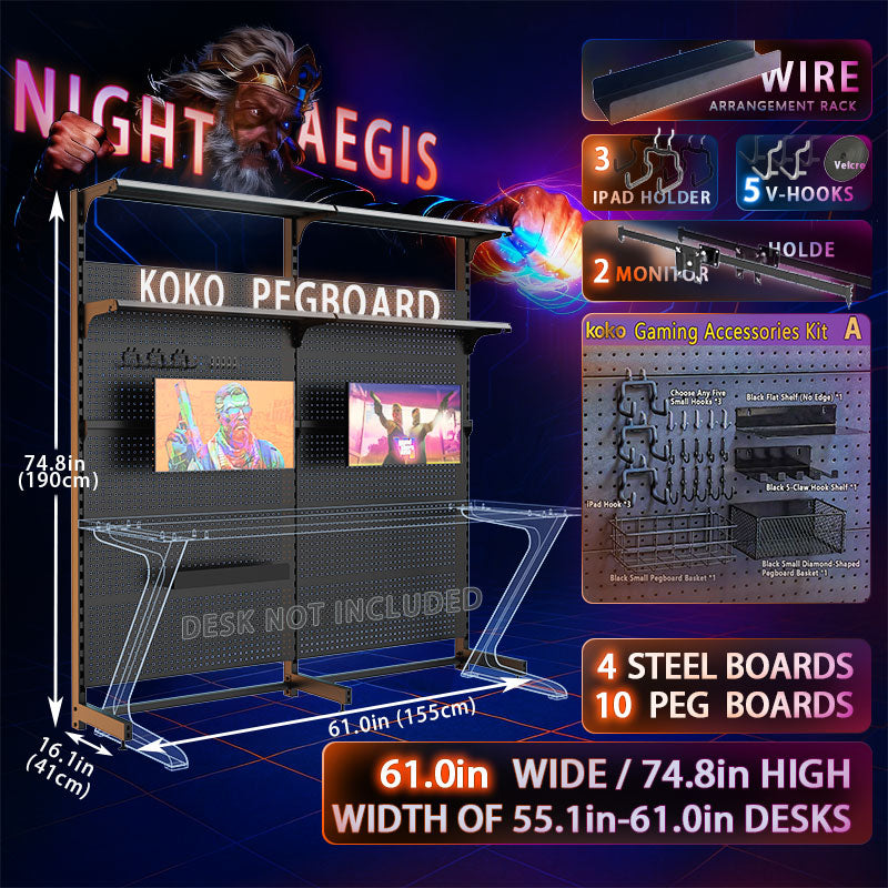 - Fits Desks 55.1-61.0in Wide | 74.8in H * 61.0in W| 4 Shelves + 10 Pegboard Back Panels / accessory kit A (Save $19) / two pieces(Save $130) - $650.00