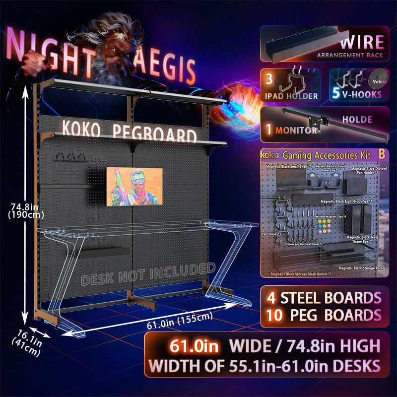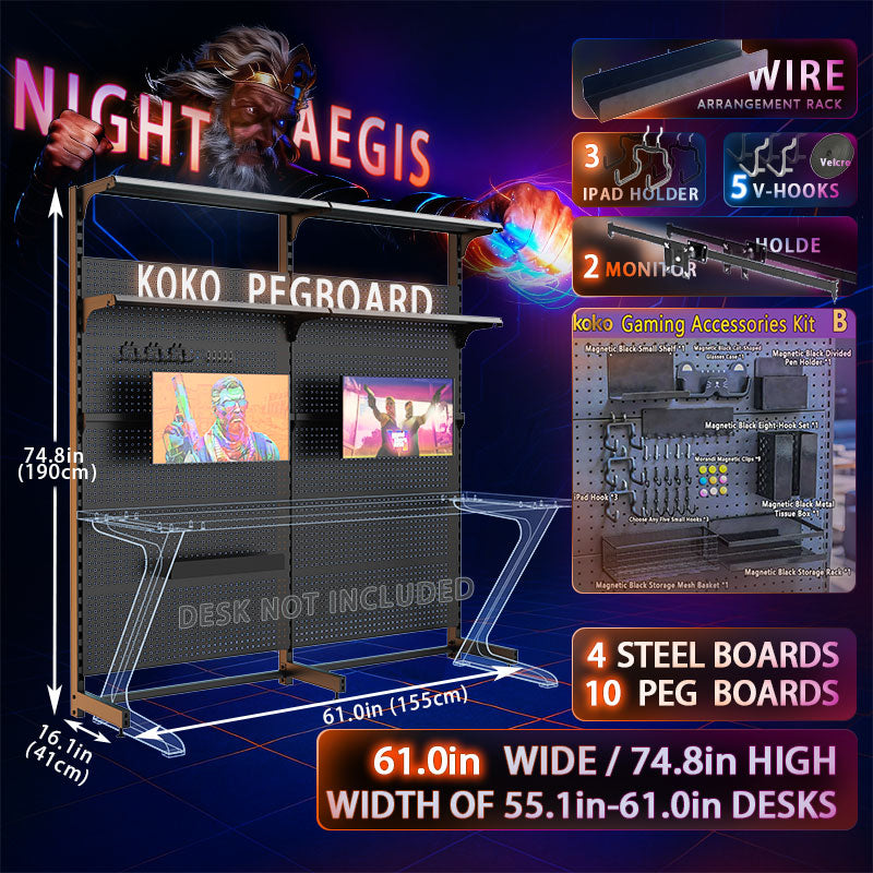- Fits Desks 55.1-61.0in Wide | 74.8in H * 61.0in W| 4 Shelves + 10 Pegboard Back Panels / accessory kit B (Save $49) / two pieces(Save $130) - $690.00