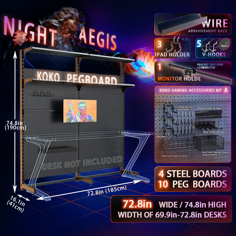 - Fits Desks 37.4-49.2in Wide | 74.8in H * 49.2in W| 2 Shelves + 10 Pegboard Back Panels / accessory kit A (Save $19) / one piece(Save $40) - $580.00