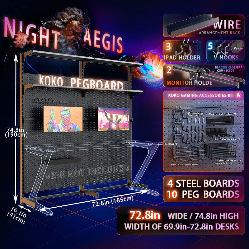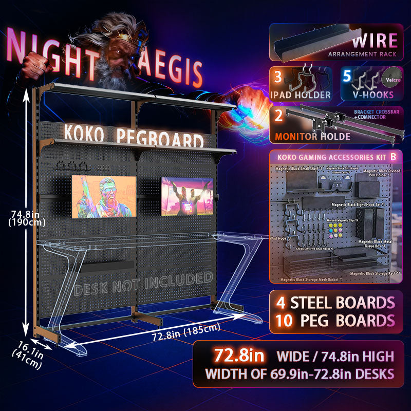 - Fits Desks 66.9-72.8in Wide| 74.8in H * 72.8in W | 4 Shelves + 10 Pegboard Back Panels / accessory kit B (Save $49) / two pieces(Save $130) - $760.00